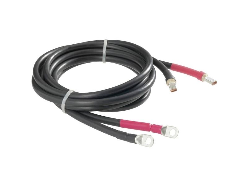 kabelsats med kabelskor för anslutning till växelriktare och med genomföringar för anslutning till batteri- och säkringsterminaler.