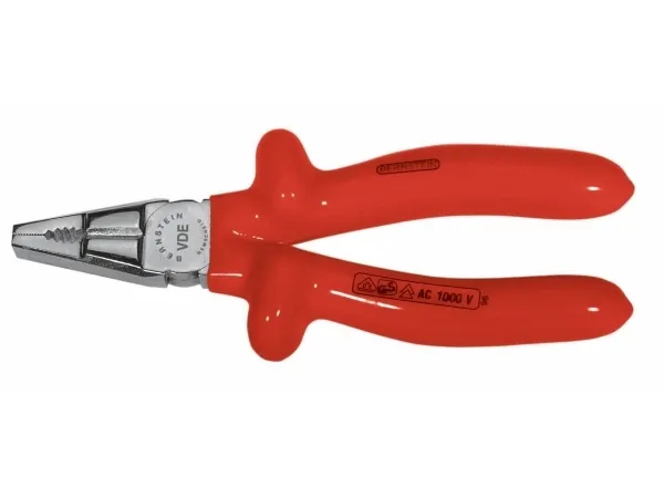 Skyddsisolerad enligt VDE-reglerna a 60.900, individuellt testad. Tillåten spänning vid arbete med skyddsisolerade skiftnycklar: 1000 V växelspänning eller 1500 V likspänning.Tvåfärgad flerskiktsisolering yttre rött - inre gult. Skador på den yttre röda isoleringen är omedelbart synliga tack vare det underliggande gula isoleringsskiktet. Fördelen: Enkel och alltid användbar säkerhetskontroll.