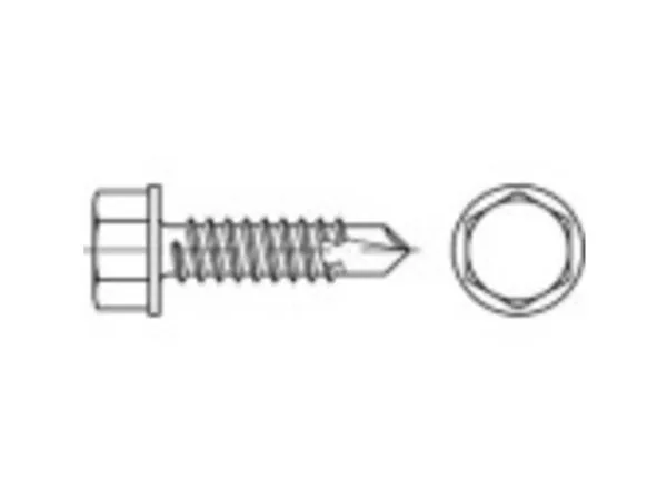 DIN7504 St.geh. Form K galvaniserade borrskruvar K, Blechschr.-gänga hex fläns huvud dimensioner: K 5,5 x 19