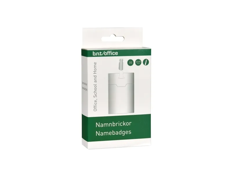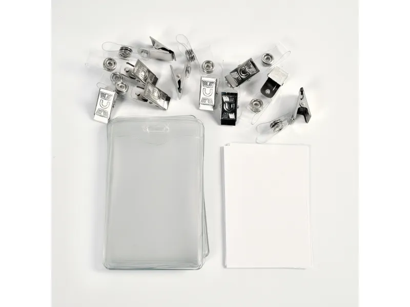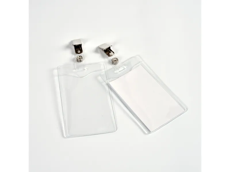 Namnbricka 60x90 mm, stående med plastiCreme och vridbart metallklipp och insats för tydlig och säker identifiering av besökare, anställda eller konferensdeltagare.