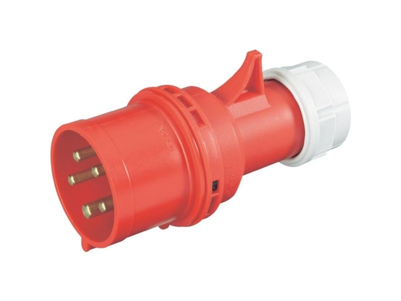 ARundstikanordninger DIN 49462/63, VDE 0623, CEE 17, IEC 309, plastkapsel, med plastindsats, 5-polet, 3 P + N + E.