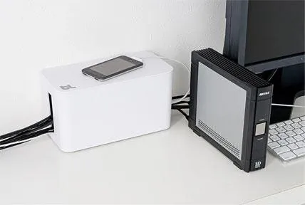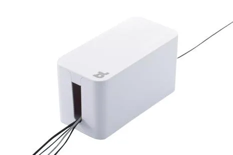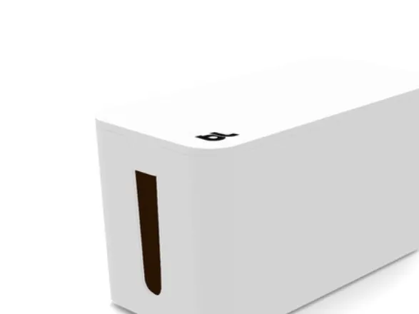 Under the desk, next to the computer, or near your appliances, cable management has never been more fun or easy. Accessory cables will always be tidy and dust free. Simply plug your device into the supplied surge protector then stow away the surplus cable lengths and close the lid and done! With cable outlets either side, CableBox Mini is ideal for hiding the cords, adapters and small hubs.