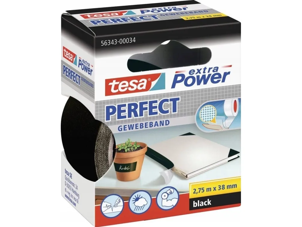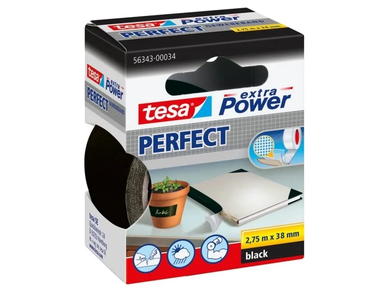 Tesa extra Power Perfect - Tygtejp - 38 mm x 2.75 m - svart