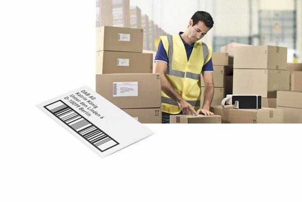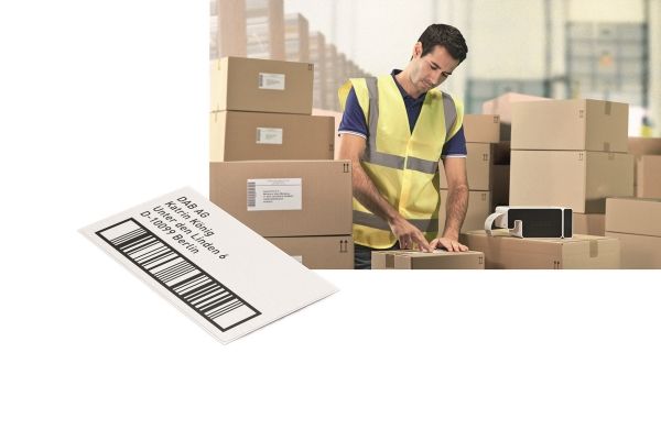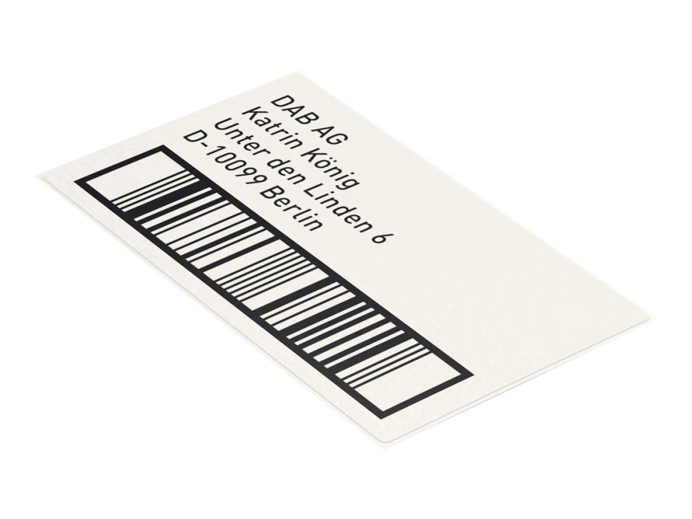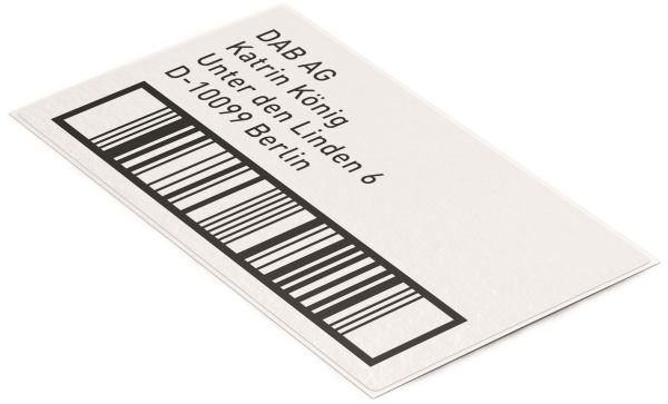 Intelligent etikettkassett med utstansade små fraktetiketter med permanent lim.