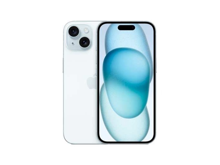 Apple iPhone 15 - 5G smartphone - dual-SIM / Internminne 128 GB - OLED-skärm - 6.1" - 2556 x 1179 pixlar - 2 bakre kameror 48 MP, 12 MP - front camera 12 MP - blå