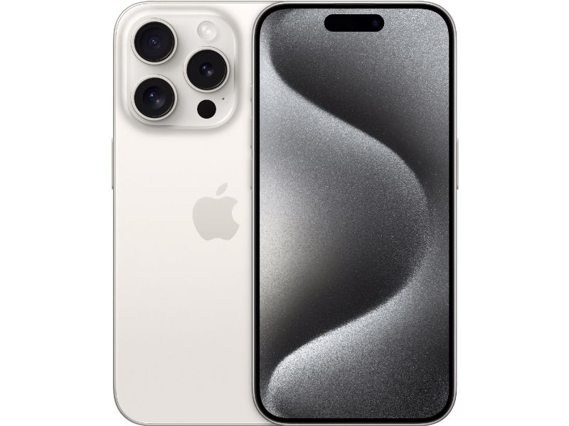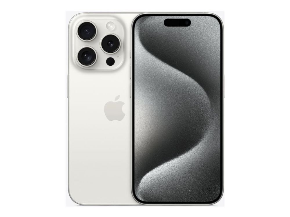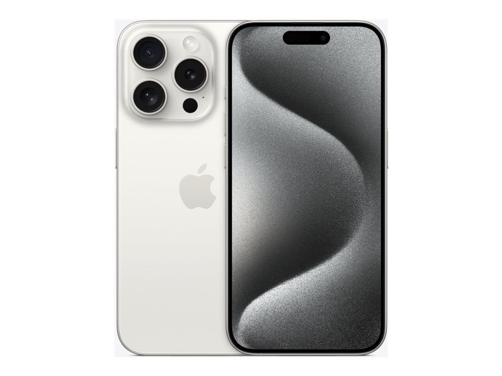 Apple iPhone 15 Pro - 5G smartphone - dual-SIM / Internminne 128 GB - OLED-skärm - 6.1" - 2556 x 1179 pixlar (120 Hz) - 3 st. bakre kameror 48 MP, 12 MP, 12 MP - front camera 12 MP - vitt titan