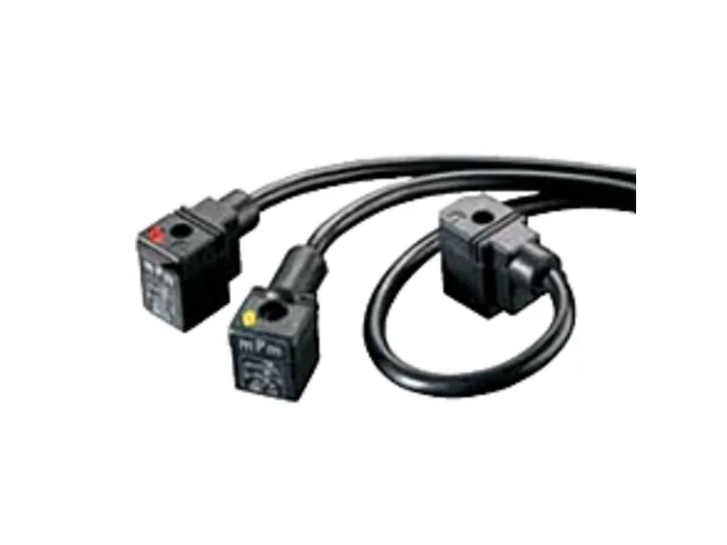 mPm DIN Valve Connector, Form C - 8mm, 2 Pole Plus Ground, to 5.0m (16.40') PUR UL Cable Pigtail, Yellow LED, Black Nitrile Gasket, 24V
