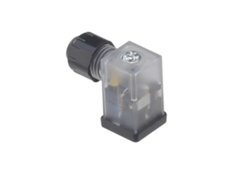 mPm DIN Valve Connector, Form C-Micro 9.4mm, External Threads, 2 Pole Plus Ground with C4 Circuit, 24V, Amber LED, Transparent, Nitrile Gasket, Bulk Pack, Mounted