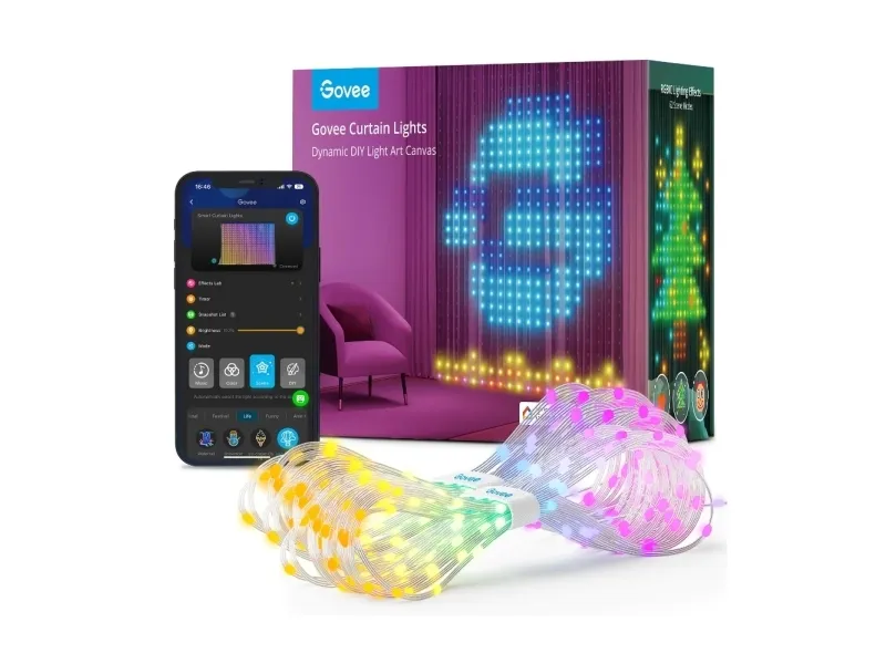 Govee H70B1 ljusridå är en mångsidig belysningslösning som ger livfull belysning till alla miljöer, inklusive sovrummet, hemmakontoret eller uteplatsen. Med sin inbyggda LED-lampa och droppformade form är den både estetiskt tilltalande och funktionell. Denna produkt är utformad för att tillgodose ett brett spektrum av belysningsbehov, med över 86 scenlägen tillsammans med ett DIY-läge, så att användarna enkelt kan skapa en personlig atmosfär. Govee H70B1 är dessutom byggd för att hålla länge och uppfyller IP44- och IP65-standarderna, vilket gör den lämplig för både inomhus- och utomhusmiljöer. Den energieffektiva LED-tekniken ger en låg energiförbrukning på 30 kWh per 1000 timmar, vilket gör den till ett miljövänligt val för konsumenterna. Integreringen av Bluetooth- och Wi-Fi-anslutning, tillsammans med kompatibilitet med Govee Home App, Alexa och Google Assistant, ger användarna möjlighet att styra och anpassa sin belysningsupplevelse. Oavsett om du vill skapa stämning för en mysig kväll eller lysa upp ditt utrymme för ett festligt tillfälle, är Govee H70B1 ljusridå ditt val.