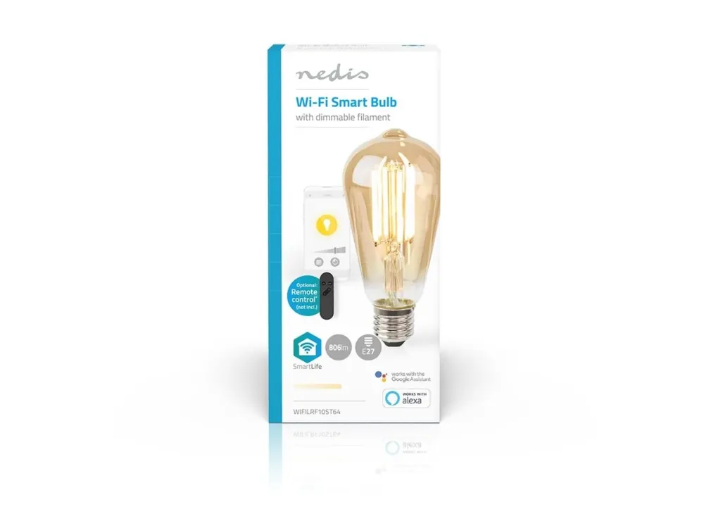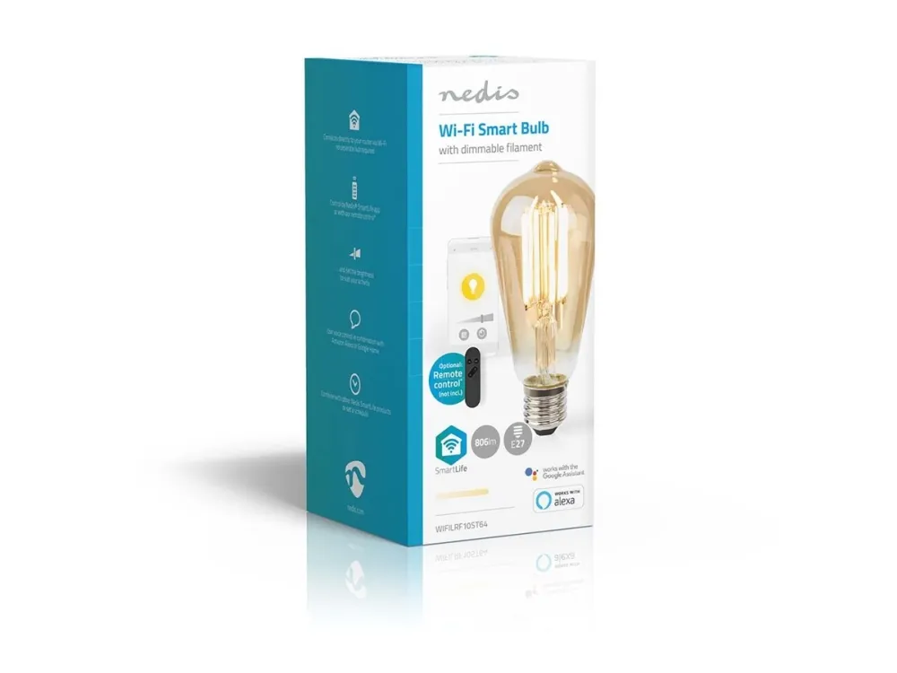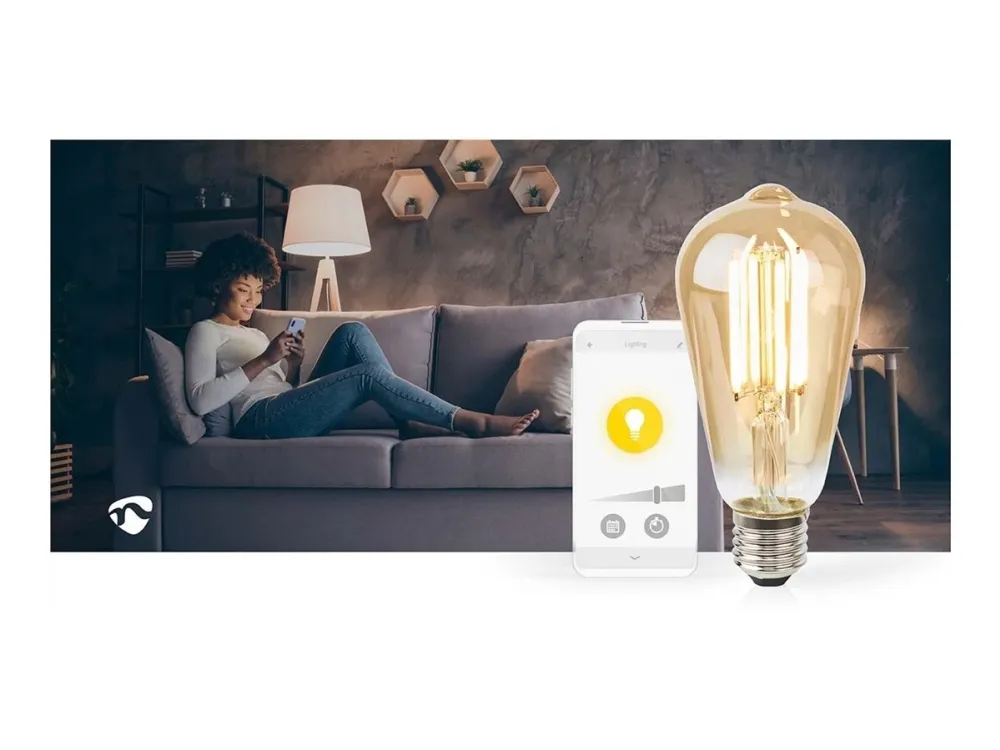 Nedis SmartLife - LED-glödlampa med filament - form: ST64 - E27 - 7 W (motsvarande 60 W) - klass E - varmt vitt ljus - 1800-3000 K - guld