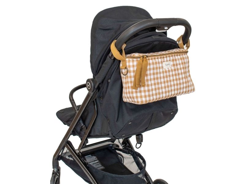 3 Sprouts förvaringskorg till sulky och barnvagn (organizer), Quilt/Gingham senap