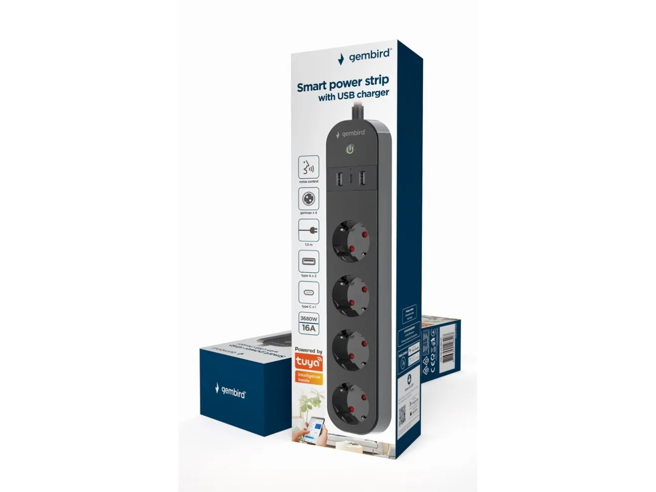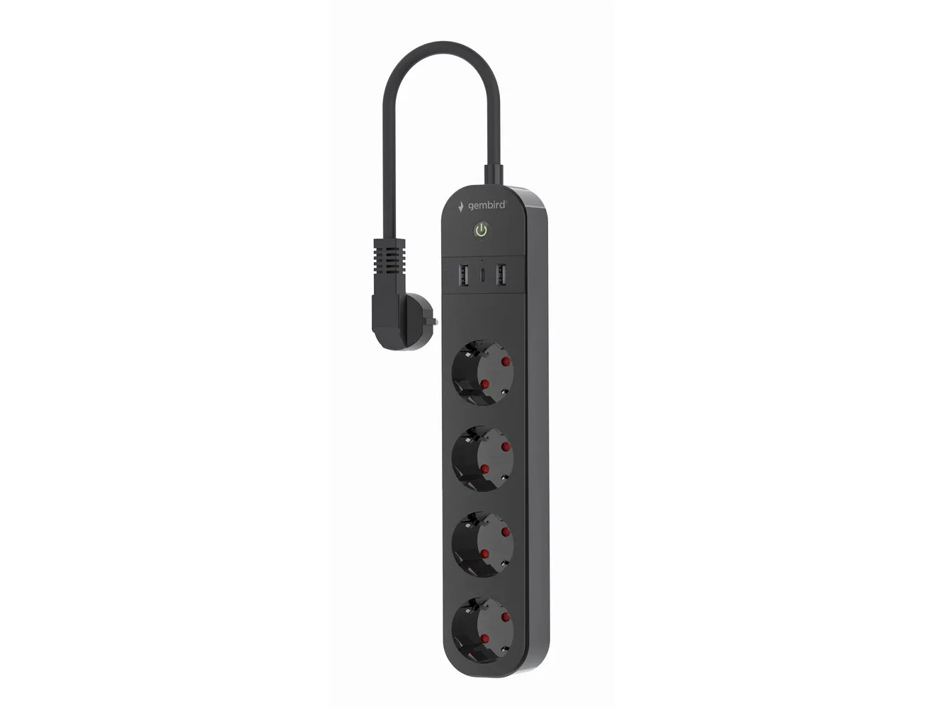 Gembird TSL-PS-S4U-01 - Smart kraftlist - AC 230 V - 3680 Watt - Wi-Fi - ingång: Typ F - utgångskontakter: 4 (Typ F, 2 x USB, USB-C) - 1.5 m sladd - svart