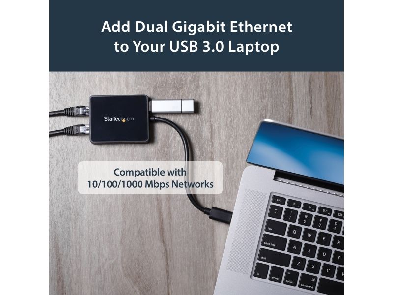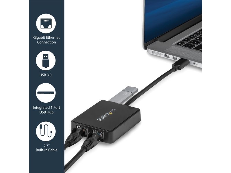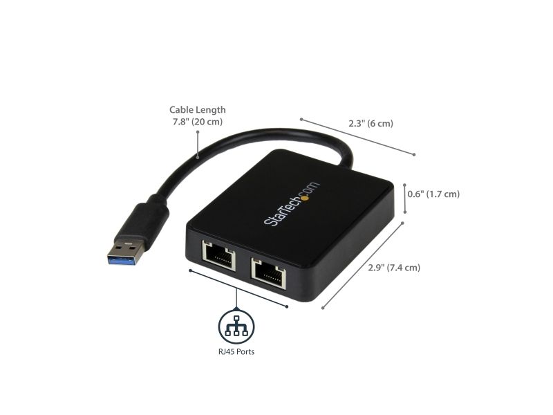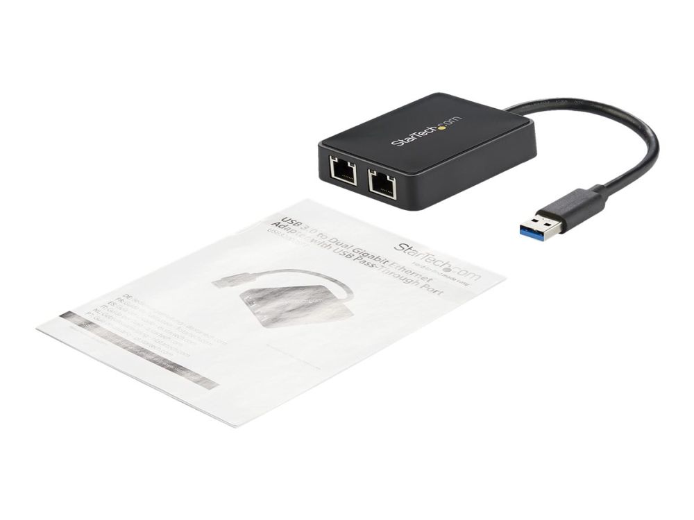 Startech USB 3.0 till Dubbel Port Gigabit Ethernet-nätverksadapter med USB-port - Nätverksadapter - USB 3.0 - 1GbE - 1000Base-T - 2 portar - svart
