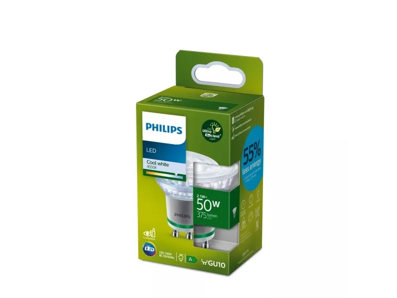 Philips LED Classic - LED-spotlight - form: PAR16 - klar finish - GU10 - 2.1 W (motsvarande 50 W) - klass A - neutralt vitt ljus - 4000 K