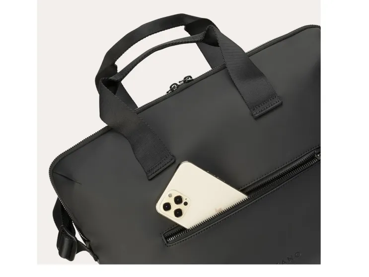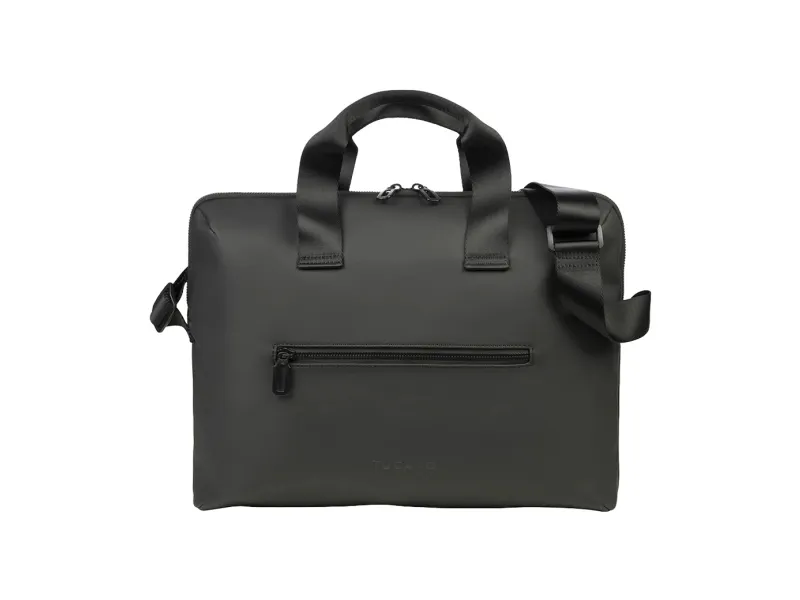 Tucano Gommo-laptopväska är en pålitlig lösning för transport av bärbara datorer upp till 16 tum. Denna väska är tillverkad av slitstarkt gummerat material och är utformad för att hålla enheterna säkra och skyddade när du är på resande fot. Med en specialdesignad justerbar axelrem och bärhandtag är bekvämligheten i fokus, vilket gör det enkelt att transportera din bärbara dator dit du behöver. Väskan har två huvudfack, ett innerfack för viktiga dokument och ett ytterfack för extra tillbehör. Tucano Gommo är idealisk för yrkesverksamma och studenter och erbjuder en blandning av funktionalitet och stil, vilket säkerställer att dina tekniska investeringar skyddas under resan.