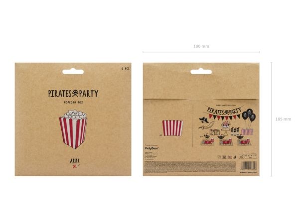 Party Deco popcornaskar, Pirates, röd och vit, 7x7x12,5 cm, 6 st universal (38447)