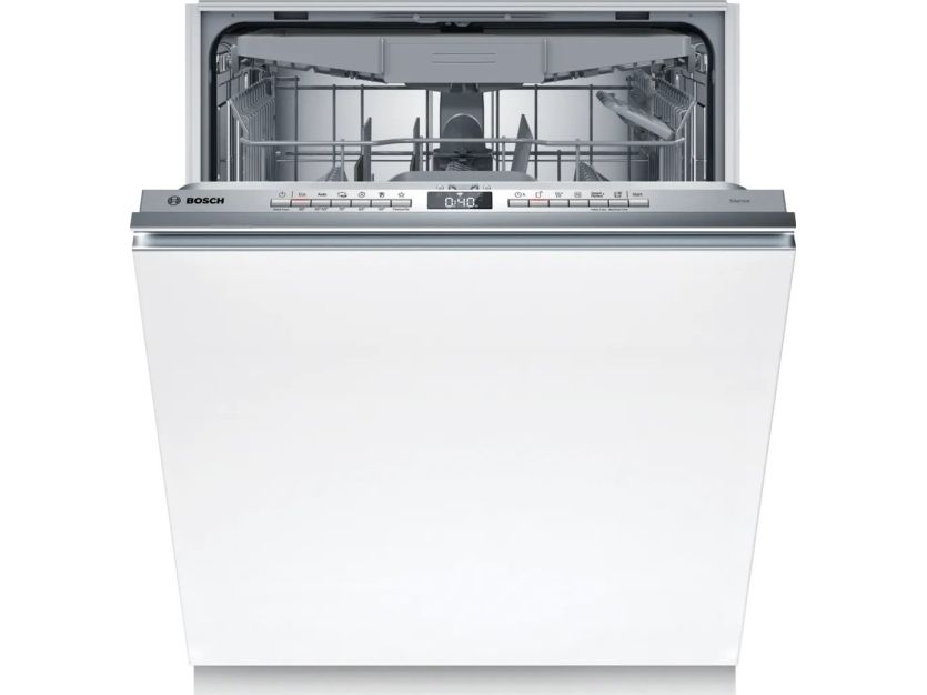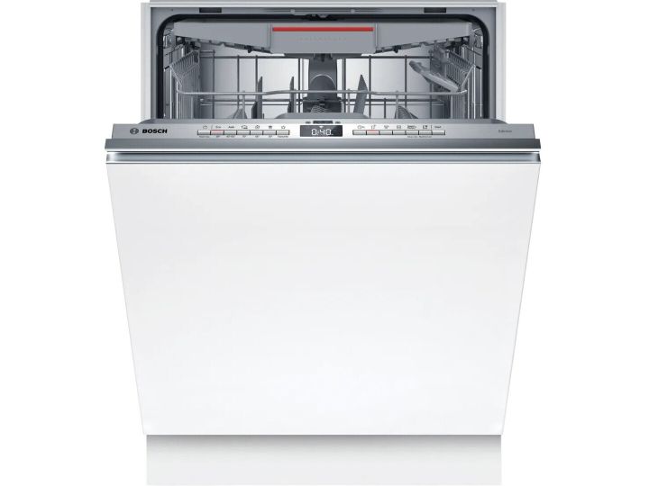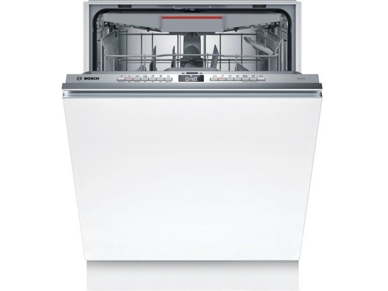 Bosch Serie 4 SMV4HVX00E. Appliance placement: Fully built-in, Product size: Full size (60 cm), Control panel colour: Stainless steel. Number of place settings: 14 place settings, Noise emission class: C, Noise level: 46 dB. Feet adjustment: 6 cm, Apps supported: Bosch Home Connect. Energy efficiency class: D, Water consumption per cycle: 9 L, Energy consumption per 100 cycles: 85 kWh. Width: 598 mm, Depth: 550 mm, Height: 815 mm