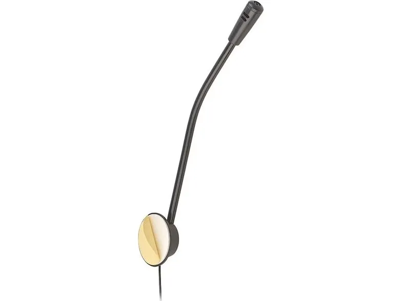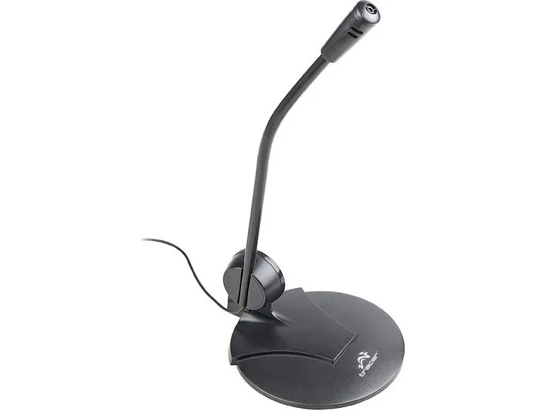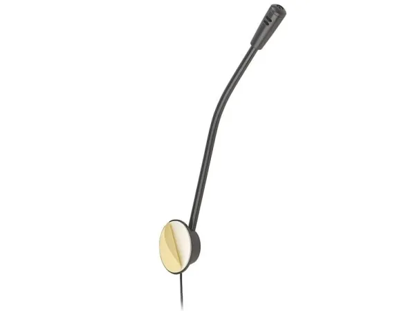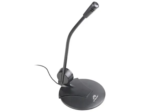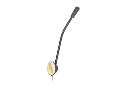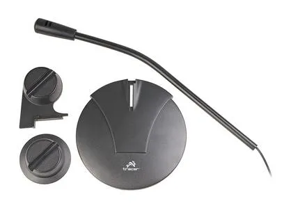 The microphone on a tripod, having a simple look and high functionality. The microphone is supplied with both a handy desk stand, and microphone connector that allows attachment to the side of the desk for example.