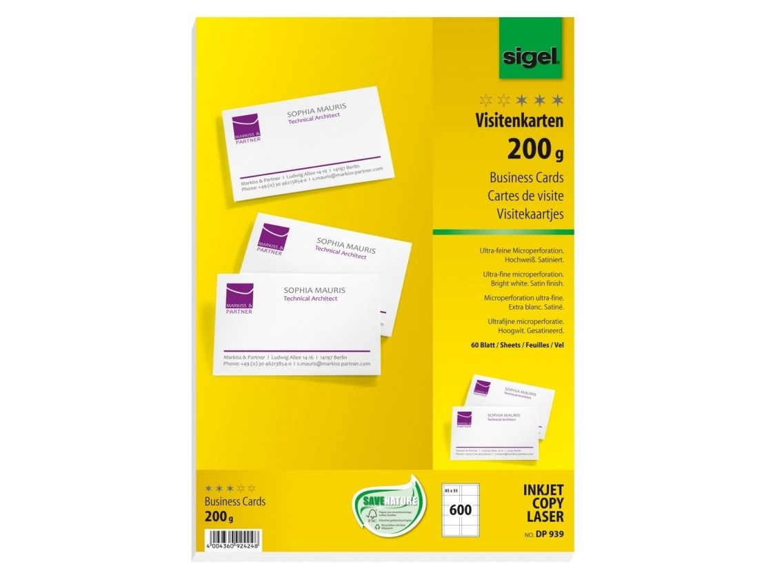Sigel Visitkort DP939 - Glansigt vitt - 85 x 55 mm - 200 g/m² - 600 kort (60 ark x 10) visitkort