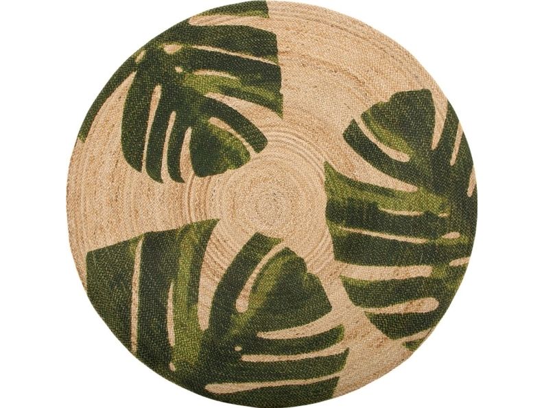 Rund jute- och monstera-matta 140 cm beige/grön INCIK