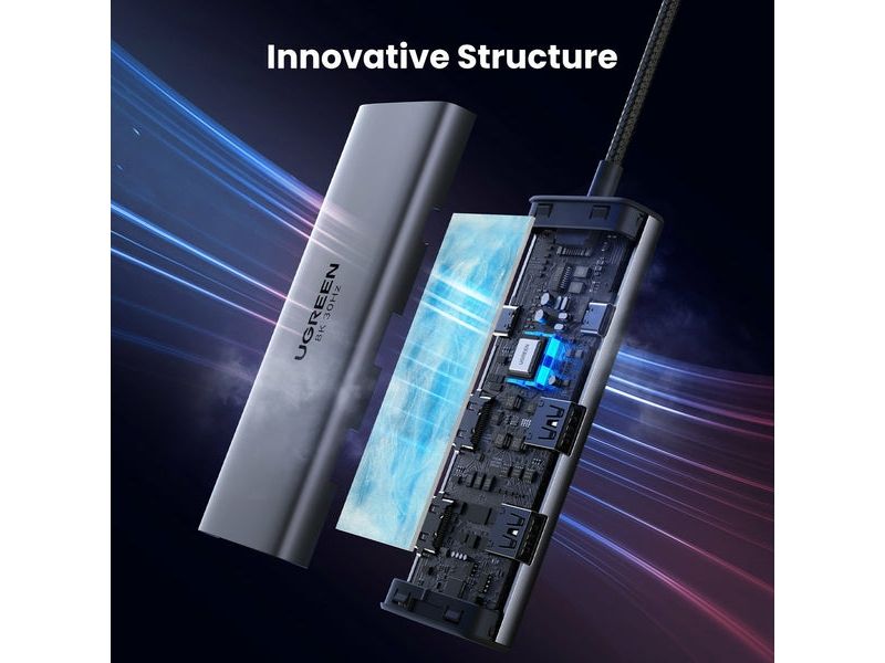 The Ugreen Revodok 206 docking station is designed to enhance connectivity and expand capabilities for modern devices. With robust USB-C and USB-A ports, this docking station provides versatile support for various peripherals, making it an addition to any workspace. The ability to deliver power up to 100 W ensures that devices charge while connected, eliminating the need for multiple chargers.