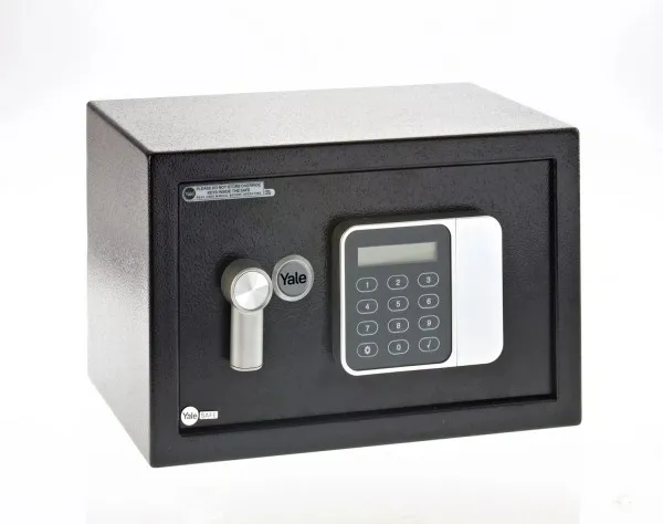 Yale YSG/200/DB2. Type: Freestanding safe, Product colour: Black, Lock type: Combination lock. Power source type: Battery, Battery type: AAA. Width: 310 mm, Depth: 200 mm, Height: 200 mm. Package weight: 4.2 kg. Number of keys included: 2 pc(s)