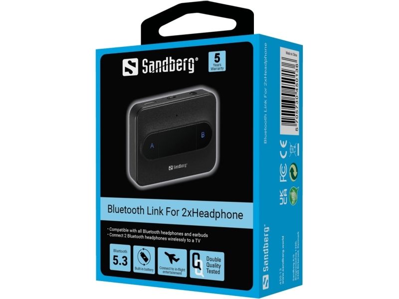 Sandberg Bluetooth Link - Trådlös Bluetooth-ljudsändare för hörlurar