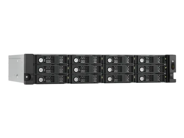 QNAP enterprise NAS with petabyte-class storage Use QNAP enterprise and all-flash QuTS hero NAS paired with multiple TL-R1200PES-RP JBODs, to obtain both breakthrough performance and massive capacity. The TL-R1200PES-RP supports SATA hard drives, providing greater choice in selecting high-capacity drives. This configuration is ideal for enterprises, science research institutions, and media production companies that require high-capacity storage for backing up or storing virtual machines, containers, and what is produced/generated by their high-performance NAS.QNAP TL-R1200PES-RP. Product type: HDD/SSD enclosure. Number of storage drives supported: 12, Storage drive size: 2.5/3.5", Supported storage drive interfaces: Serial ATA. Data transfer rate: 6 Gbit/s. Hot-swap. Rack mounting, Rack capacity: 2U, Product colour: Black, Grey