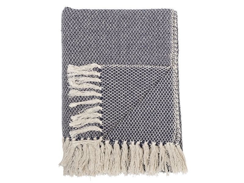 BLOOMINGVILLE Barry pläd, blå, återvunnen bomull
