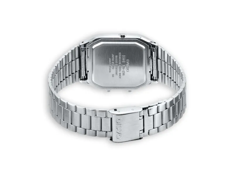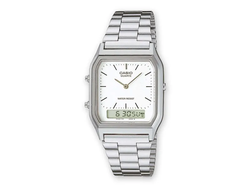 A stylish update of a classic Casio design, this retro timepiece is built for stellar contemporary styling. The piece features a combination display and a fold over clasp. Perfect for everyday and street styling.Casio AQ-230A-7DMQYES. Gender: Unisex, Watch case material: Resin, Housing colour: Silver. Battery type: SR920W, Battery life: 3 year(s). Width: 27.8 mm, Depth: 8.1 mm, Height: 38.8 mm. Certification: DIN 8310 / ISO 22810