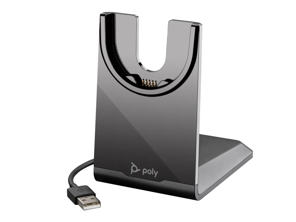 Charging stand for Voyager Focus 2 and Voyager 4300 UC Series headsets.