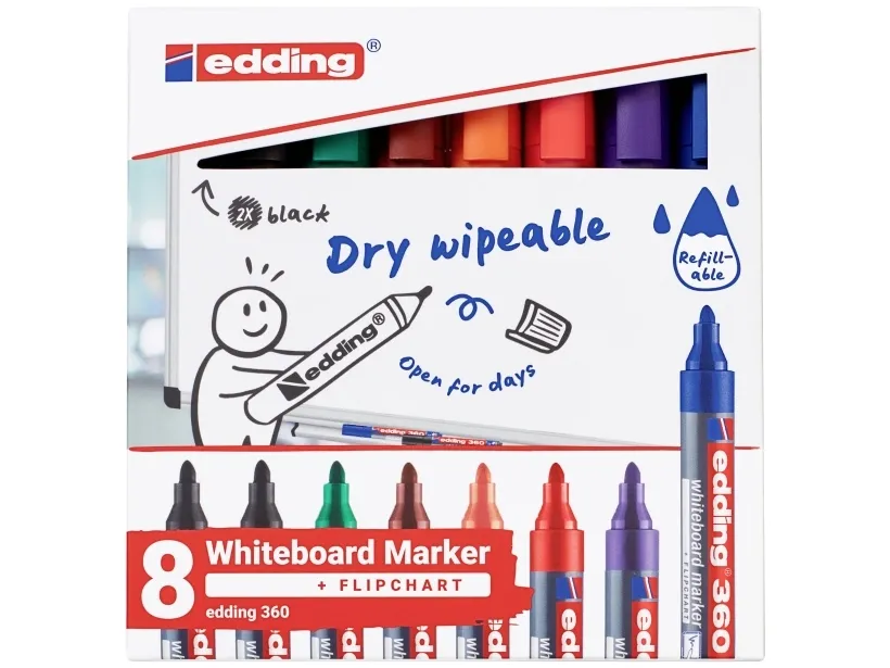 Edding 4-360-8-S2999 Whiteboardmarker set Svart, Röd, Blå, Grön, Orange, Brun, Violett 8 st