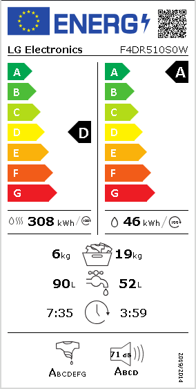 The LG Serie R5 F4DR510S0W washer/dryer combines performance with efficiency to meet laundry needs effectively. This washer/dryer features a large loading capacity of 6 kg, making it suitable for various household requirements. With multiple drying options such as cupboard dry, LowTemp Dry, and dry only, it offers flexibility while ensuring ideal fabric care for your garments. The energy consumption per cycle is 3.077 kWh, providing a reliable yet energy-conscious solution for laundry tasks. Equipped with features like LoadSense and AI DD, this washer/dryer adjusts the washing conditions automatically based on load size and fabric type. With a maximum spin speed of 1400 rpm and a noise level of 71 dB(A), it operates efficiently while minimizing disturbance. Safety is prioritized with features like a child security lock and anti-foam control, ensuring peace of mind during operation. The combination of thoughtful design and reliable technology makes the LG Serie R5 an essential addition to any home laundry setup.