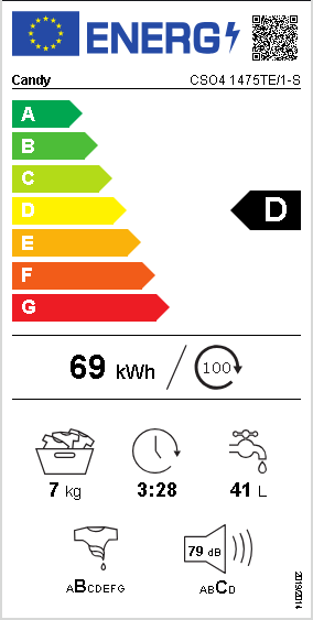 Candy Smart Pro CSO4 1475TE/1-S, Frontmatad, 7 kg, B, 79 dB, 1400 RPM, D