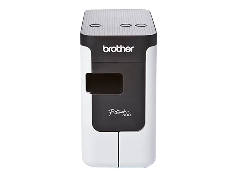 Print labels quickly and easily. The PT-P700 offers simple connectivity – so there's no software or drivers to install. Simply connect to your computer via the included USB cable and launch the built-in software to get started creating professional labels using your own keyboard.\n\nCreate multi-line labels using fonts and graphics on your computer. Fast print speeds and automatic label cutting help speed large labeling jobs along. For more advanced labeling, such as including bar codes or printing from a database, you can use the P-touch Editor software.\n\nPrint labels up to 24mm wide, with large crisp text up to 48pt. The PT-P700 is compatible with durable, TZe series tapes – great for indoor applications or harsher environments – such as outdoors. Choose from a variety of colors and sizes, including Extra-strength adhesive, Acid free, Cable and wire, Tamper evident, Fabric iron-on, Super narrow or decorative Simply Stylish. The split back tapes offer a hassle free application, with easy peel and stick.\n\n- No software or drivers to install - just connect via included USB cable to get started\n- Create large, durable labels up to 24mm wide - suitable for indoor or outdoor use\n- Customize labels using fonts and graphics on your computer\n- Quickly create multi-line labels using the built-in software and your own keyboard\n- Fast print speeds and automatic label cutting help support efficient labeling\n- Download templates from the Cloud to add to your P-touch Editor label library\n- When finished, simply turn it off and unplug. No software is left behind on your computer\n- Powered by AC adapter (included) or 6 x AA batteries (sold separately)\n- Includes 0.94" (24mm) laminated starter tape, AC adapter, USB cable and software.