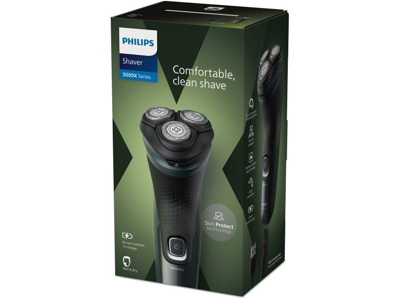 Upptäck Philips rakapparat 3000X Series X3052, utformad för dig som vill ha en exakt och bekväm rakning. Den här rakapparaten har PowerCut-blad och flexibla 4D-huvuden som enkelt anpassar sig efter ansiktets konturer och ger en nära rakning varje gång. Oavsett om du föredrar våt- eller torrakning är X3052 fullt utrustad för att uppfylla dina behov, med SkinProtect-teknik för en skonsam rakning. Med 45 minuters sladdlös drift efter bara en timmes laddning och en helt tvättbar design erbjuder den både bekvämlighet och användarvänlighet. En pop-up-trimmer ökar mångsidigheten ytterligare och gör den idealisk för grooming av mustasch och polisonger. Den är byggd för att hålla länge och kombinerar blad av kirurgiskt stål med en ergonomisk design, samtidigt som den är IPX7-kompatibel, vilket garanterar hållbarhet och vattentät drift. Philips 3000X Series X3052 rakapparat är din allierade för daglig grooming och ger en slät, hudvänlig rakning vid varje användning.