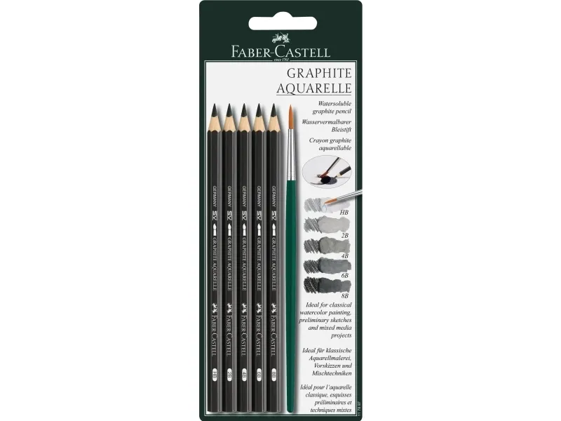 FABER-CASTELL GRAPHITE AQUARELLE - Blyertspenna - grafit - 2B, 4B, 6B, 8B, HB - 3,3 mm (förpackning med 5 st)