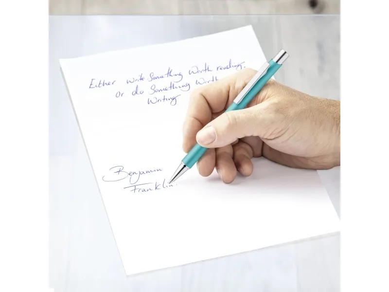 Discover the STAEDTLER elance 421 45, a ballpoint pen designed for the modern professional. With its airplane-safe feature, this pen is your perfect travel companion, ensuring that you arrive at your destination without the inconvenience of ink leaks caused by cabin pressure changes. The medium line width delivers clear and legible writing, ideal for all your writing tasks. A push-button mechanism provides convenience and ease of use, allowing for quick one-handed operation. The pen's metal clip and retractable design not only add to its sleek appearance but also offer practical benefits, such as easy storage and protection of the pen tip. Moreover, the STAEDTLER elance 421 45 is refillable, making it a sustainable choice for those who value both quality and environmental responsibility. Whether for personal use or as a thoughtful gift, this pen represents a blend of functionality, style, and sustainability.