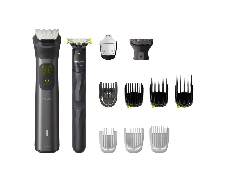 All-over grooming set Precise trim, sharp edges and convenient shave Craft your personal look with this ultimate grooming set for face, head and body. This unique combination of our most advanced durable trimmer and OneBlade offers ultimate precision trimming and styling to achieve the style you want.Philips All-in-One Trimmer MG9540/15 Series 9000. Product colour: Grey, Minimum hair length: 0.2 mm, Maximum hair length: 2 cm. Power source: Battery, Operating time: 120 min, Battery type: Built-in battery. Accessories included: Philips OneBlade