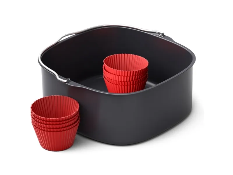 Förbättra din matlagningsupplevelse med Philips HD9957 tillbehörssats, skräddarsydd för varmluftsfritöser. Satsen innehåller en bakform och bakformar i silikon som är utformade för att utöka dina bak- och matlagningsmöjligheter. Oavsett om du vill baka en tårta, laga en gryta eller förbereda frukostmuffins, har denna tillbehörssats allt du behöver. Varje del är utformad för bekvämlighet och mångsidighet och passar perfekt till din Philips varmluftsfritös. Dessutom är bakformen och bakformarna diskmaskinssäkra, vilket gör att rengöringen blir lika enkel som tillagningen. Med 9 delar är denna tillbehörssats ett praktiskt tillskott till ditt kök och erbjuder en lösning för ett brett utbud av matlagningsuppgifter.