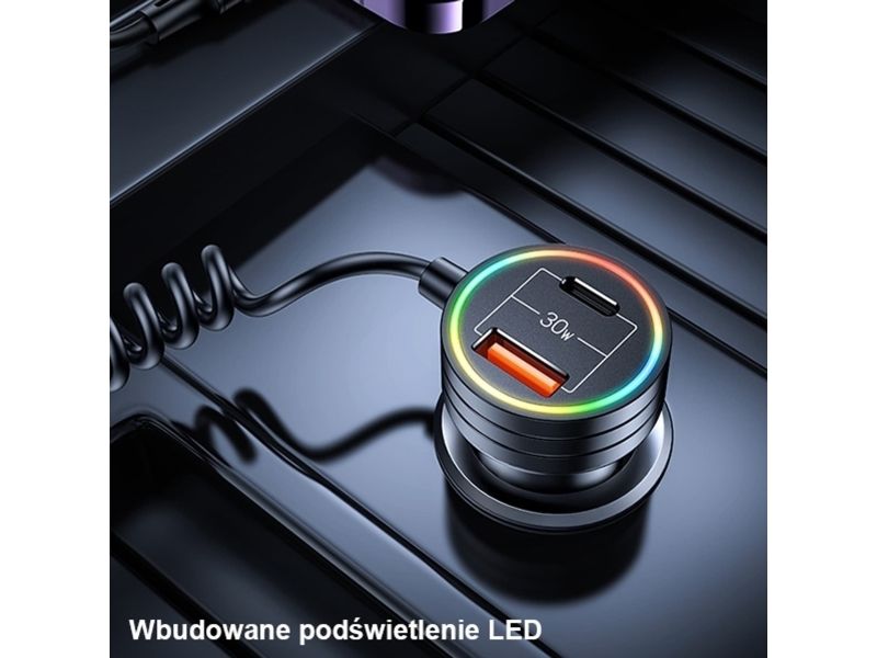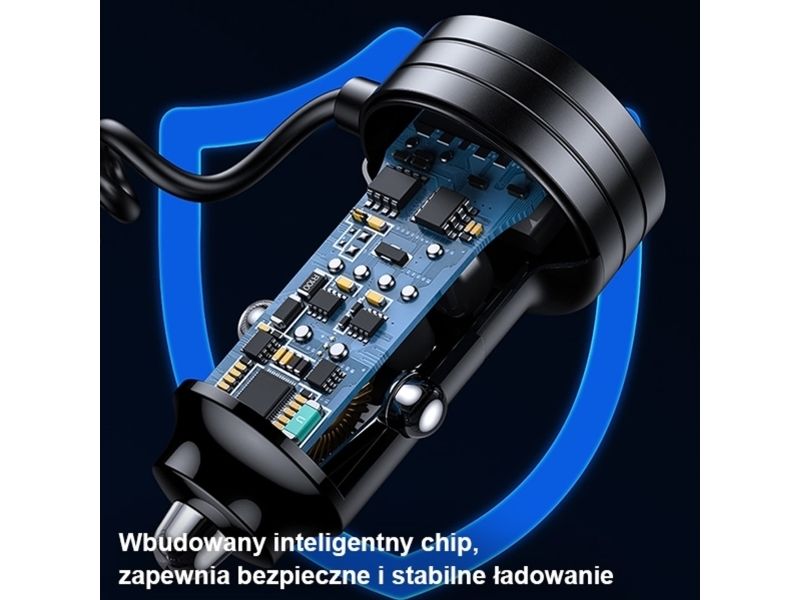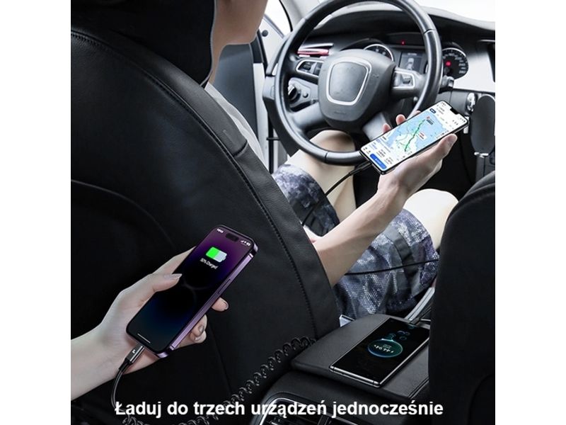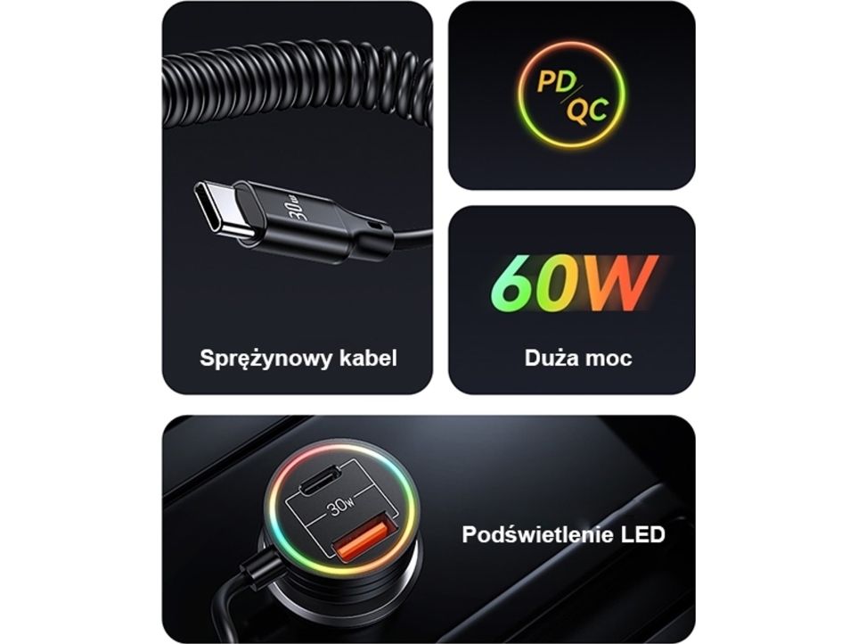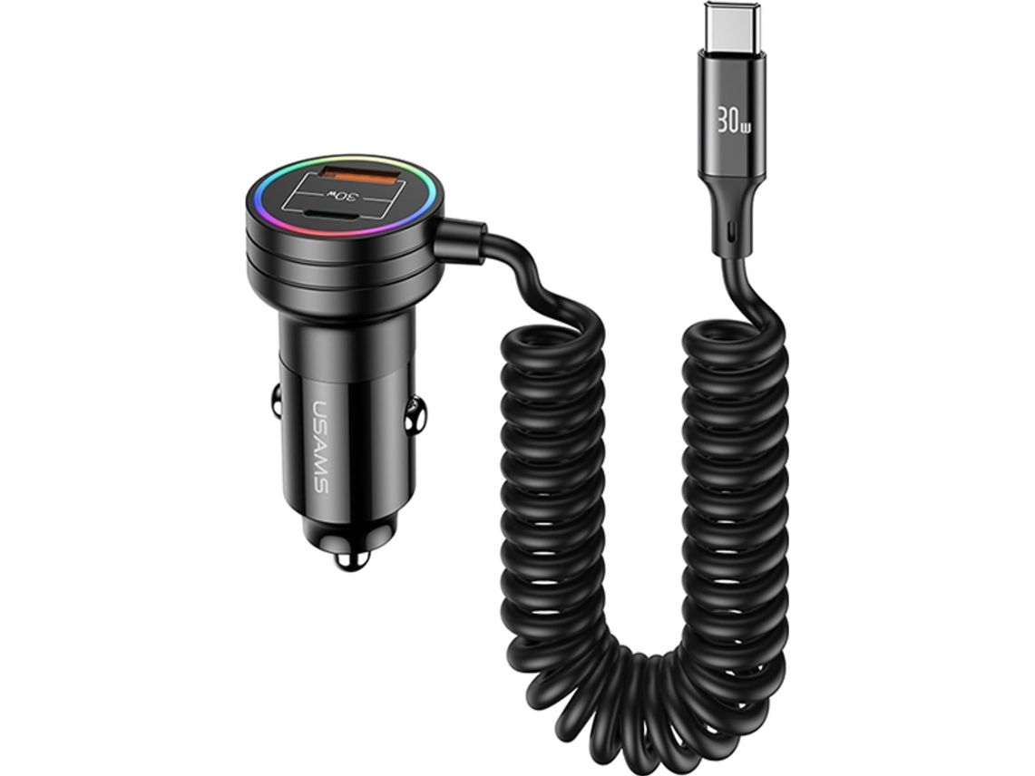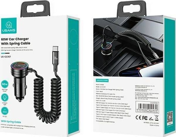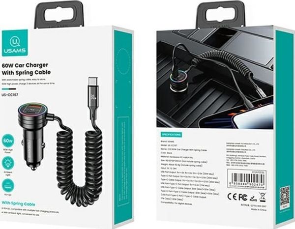 USAMS bil-laddare med kabel spir USAMS 2xUSB-C 1xUSB-A C33 60W svart CC167 (US-CC167)