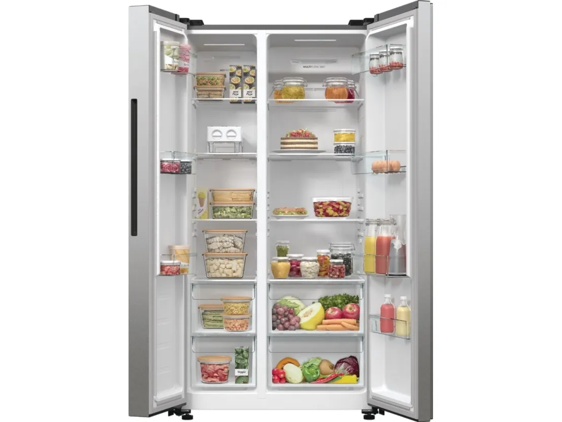 Upptäck Gorenje Advanced NRR9185EAXL, en kyl/frys utformad för det moderna hushållet. Denna fristående apparat har inte bara en generös total nettokapacitet på 550 liter utan integreras också sömlöst i ditt dagliga liv med sin frostfria kyltyp och elektroniska styrsystem. LED-displayen på dörren och touch-kontrollerna ger dig bekvämlighet nära till hands, vilket möjliggör enkla justeringar och övervakning.