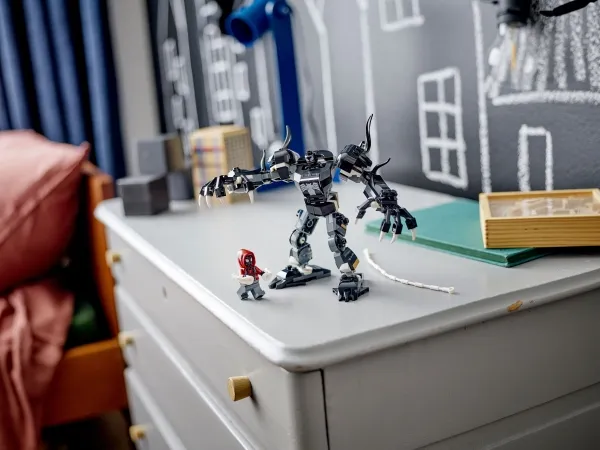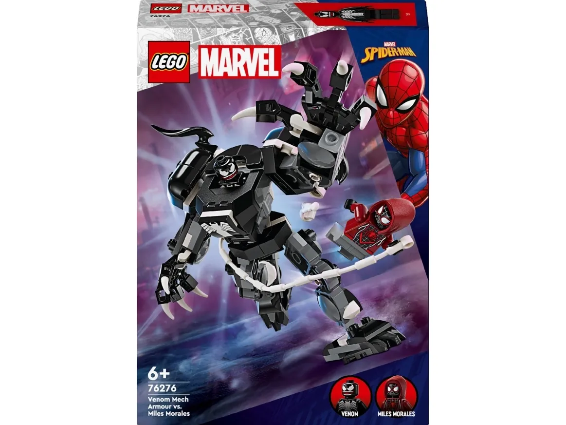 Den byggbara, rörliga Venomroboten har ledade armar, ben och klor på händerna, som är tillräckligt stora för att hålla i en minifigur. Bröstkorgen kan öppnas för att avslöja en cockpit för minifigurpiloten Venom. Setet innehåller även minifiguren Miles Morales med 2 handhållna nätkanoner och ett flexibelt ”nätrep”, som kan fästas på flera ställen på den byggbara Venomroboten. Barn kan utöka lekmöjligheterna ännu mer genom att kombinera detta byggbara lekset med andra LEGO Marvel robotar i serien (säljs separat). För ännu mer digitalt skoj kan byggare zooma in, rotera modeller i 3D och följa sina framsteg i den roliga, intuitiva appen LEGO Builder.