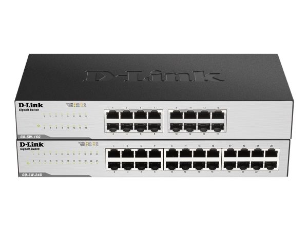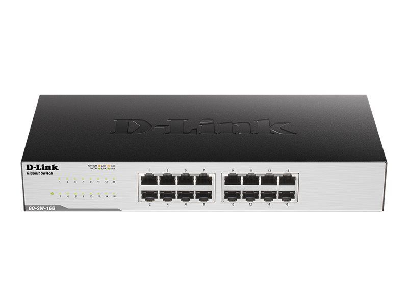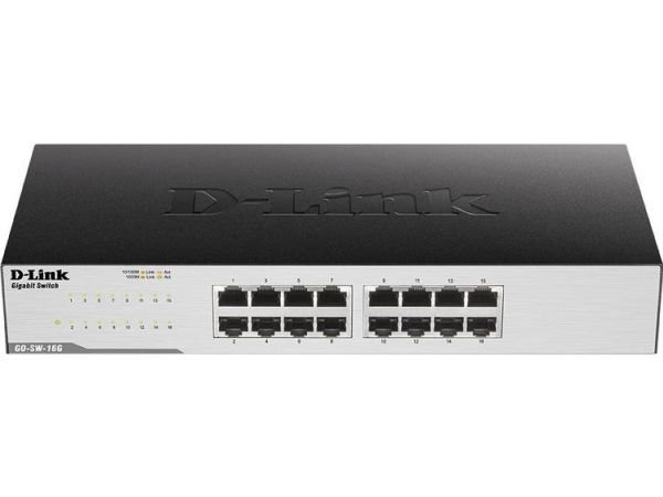 The D-Link GO-SW-16G 16-Port Unmanaged Gigabit Switch offers an economical way for SOHO and small to medium businesses (SMB) to deploy an energy-efficient switch that features the increased bandwidth of Gigabit ports.