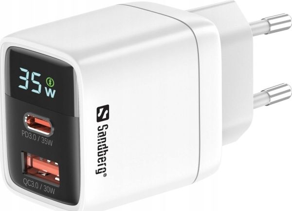 Sandberg - Strömadapter - 2-i-1 - 35 Watt - 3 A - PD 3.0, QC 3.0 - 2 utdatakontakter (USB, USB-C)