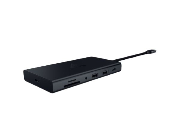 The Razer docking station is designed to enhance connectivity and performance with a compact form factor and an integrated 20 cm USB-C cable. It supports a variety of interfaces, including HDMI, Gigabit Ethernet, and multiple USB ports, making it a versatile solution for both home and office setups. Featuring high-quality aluminum construction, this docking station complements the aesthetics of modern tech environments. With the ability to deliver up to 85 W of power through USB-C Power Delivery, users can keep devices charged while enjoying seamless data transfer and video output at 4K resolution and a 60 Hz refresh rate.