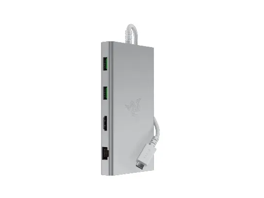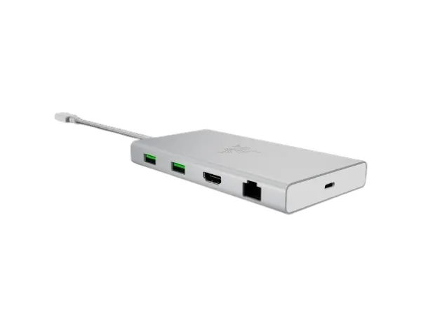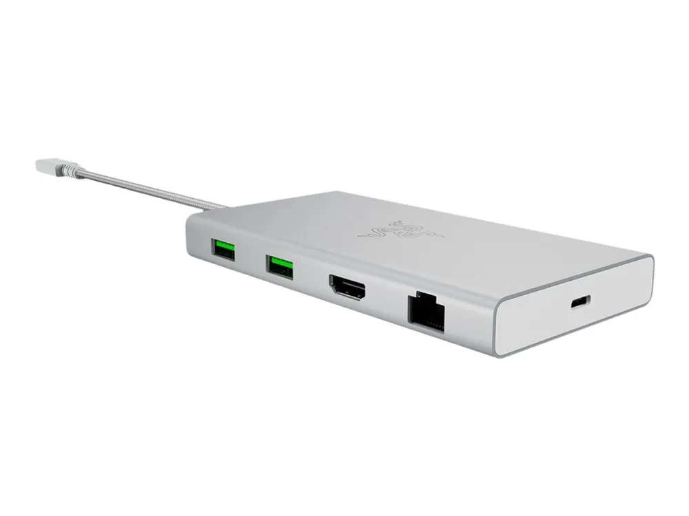The Razer docking station combines functionality and style, making it an accessory for modern computing needs. Its compact design offers a 20 cm USB-C cable and sturdy aluminum construction that ensures durability. With multiple connectivity options including USB 2.0, USB 3.2 Gen 2, network interfaces, and video support via HDMI, this docking station enhances the versatility of any setup. It supports resolutions up to 4K at a refresh rate of 60 Hz, ensuring crisp visuals that are ideal for gaming, streaming, or professional use.