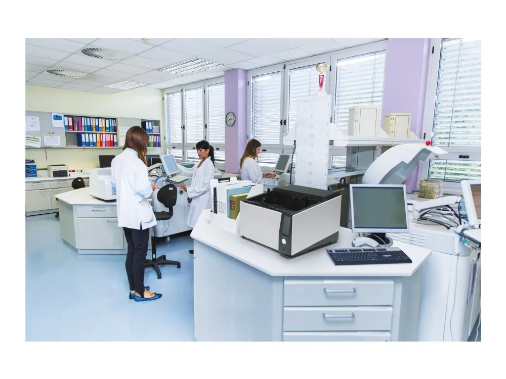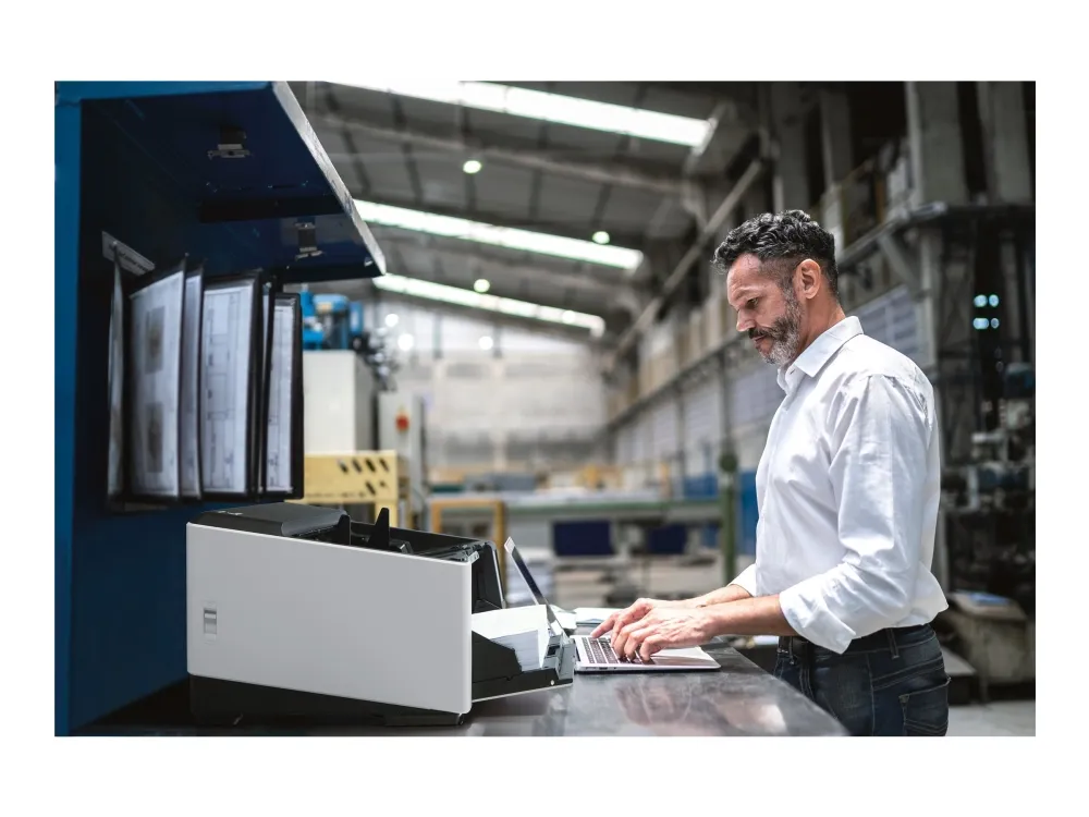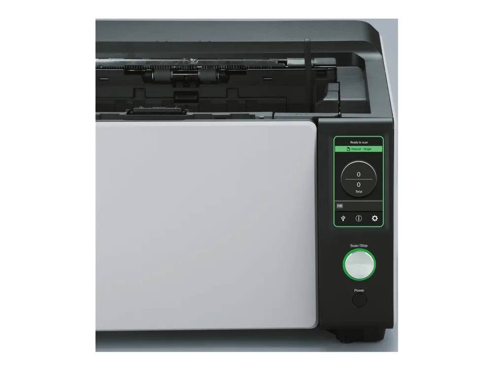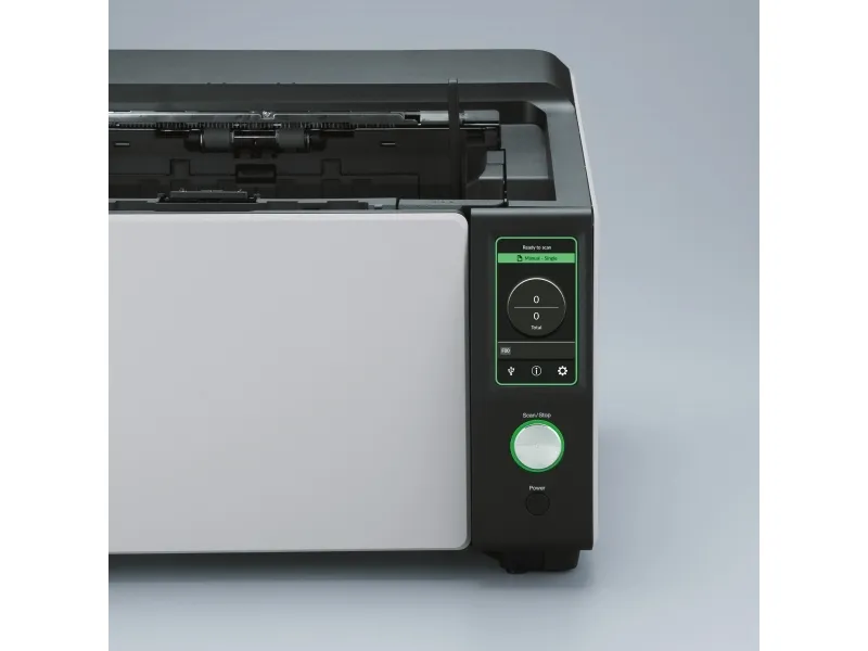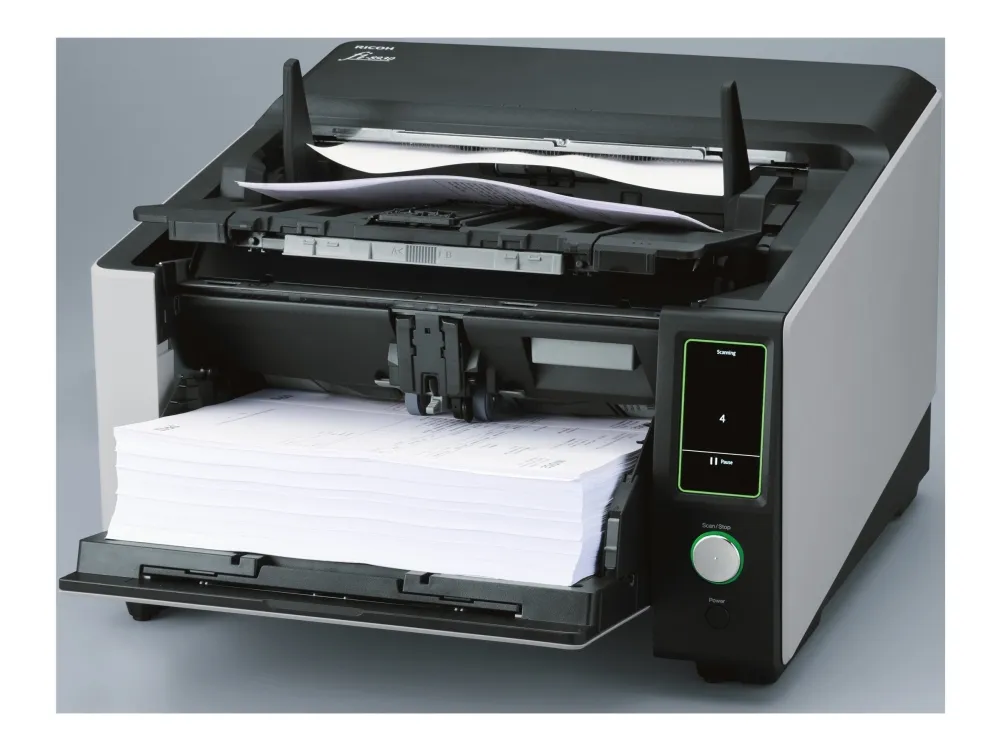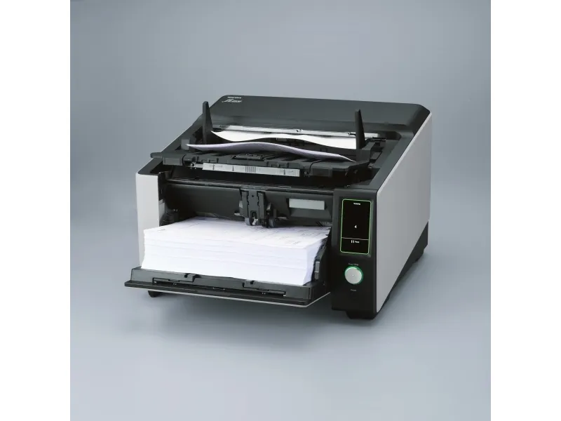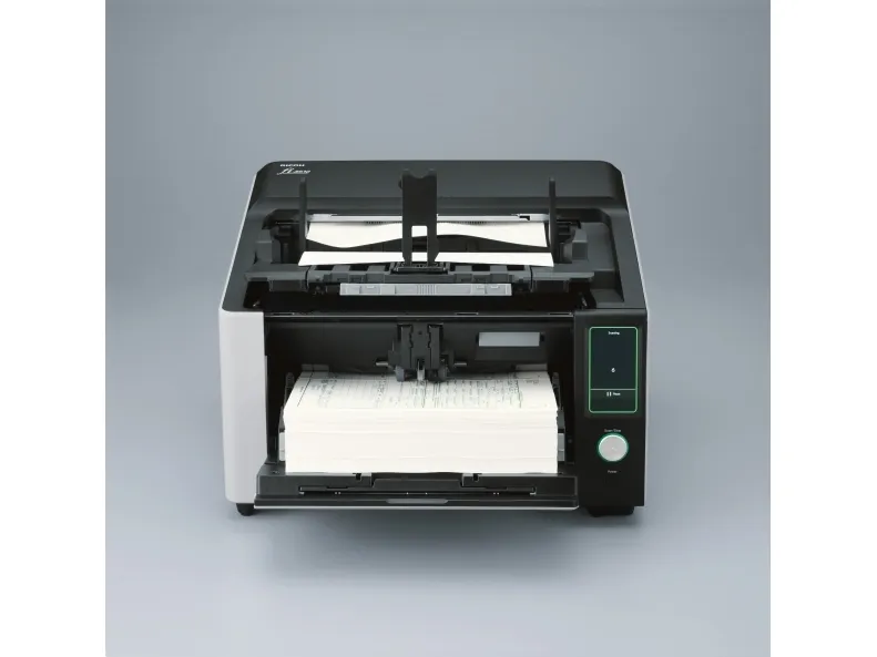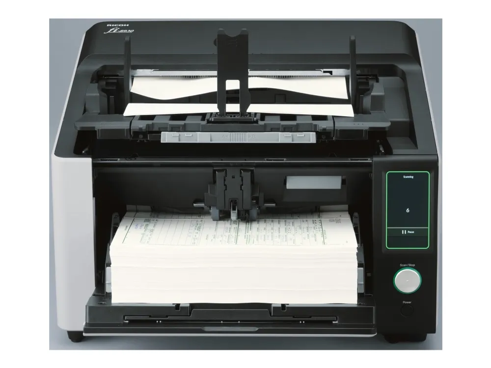The Ricoh fi-8930 image scanner offers you the performance, reliability, and usability to maximize productivity. The result? A highly flexible, resilient and cost-effective scanning operation. The fi-8930 is optimized for heavy-duty environments. With a generous Automatic Document Feeder capacity of 750 and fast 130ppm speed, it is designed to handle continuous scanning of large volumes of documents. Consistent performance is ensured by high-speed USB 3.2 or Gigabit LAN connectivity, and the fact that its wide 105° opening angle and internal LED lights make it easy to maintain. Stoppages are avoided and time is saved thanks to state-of-the-art paper protection features such as Stapled Document Detection and Automatic Skew Correction. The Intelligent Multi-Feed Function also understands when to stop for labels, sticky notes or photos, and when not to. Many different types of documents can be handled without fuss or interruption because of its two feed paths; the classic U-turn ADF, and the straight-through path which accepts documents up to 1.25 mm thick. And mixed batches are no problem thanks to the Automatic Profile Selection feature. Ricoh Image Scanners deliver OCR accuracy rates and exceptional image quality. This is achieved through a combination of unique Clear Image Capture technology, and PaperStream IP driver which also removes noise and optimizes file sizes for lower-cost storage. The Ricoh fi-8930 offers a complete package for high-volume scanning.