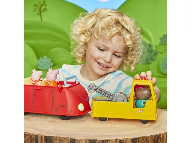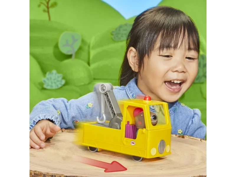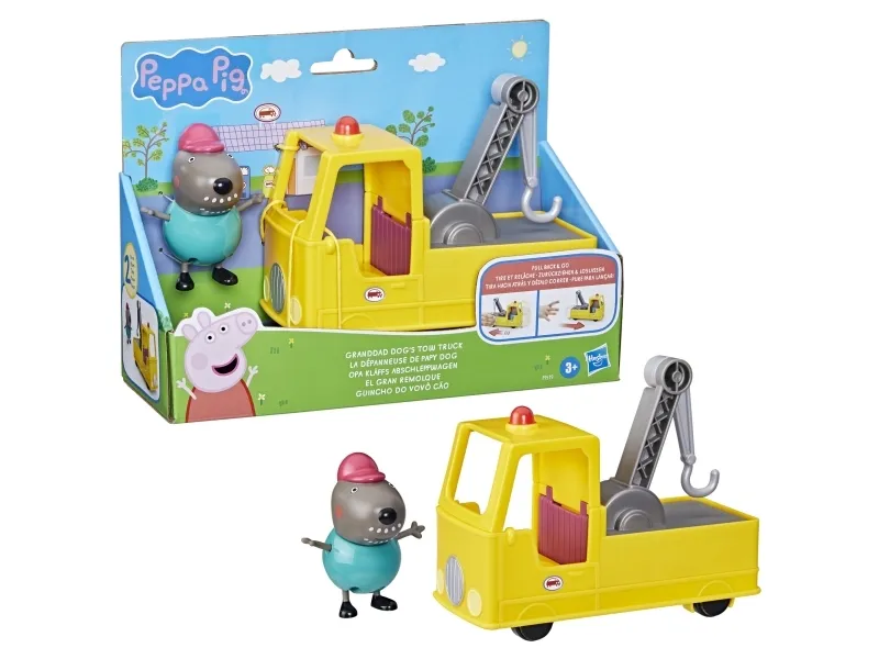 Men oj, har bilen gått sönder? Ingen fara – Farfar Hund kommer till undsättning med sin bogserbil! Det här Greta Gris-leksakssetet har en leksaksbogserbil med dra bakåt-funktion – dra den bara bakåt och se hur den sticker iväg! Farfar Hund-figuren ryms i hytten, och taket med gångjärn gör det lätt för små händer att komma åt figuren. Med den rörliga bogserkroken kan barnen föreställa sig scener ur programmet eller hitta på sina egna äventyr! Greta-leksaker som Granddad Dog's Tow Truck baseras på de omtyckta Greta Gris-karaktärerna och passar perfekt som present för barn från 3 år, eller vilket barn som helst som gillar byggmaskiner eller leksaksfordon. © 2023 ABD Ltd/Ent. One UK Ltd. Hasbro och alla relaterade namn är varumärken som tillhör Hasbro.