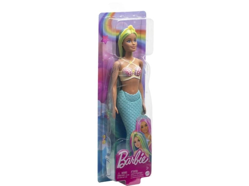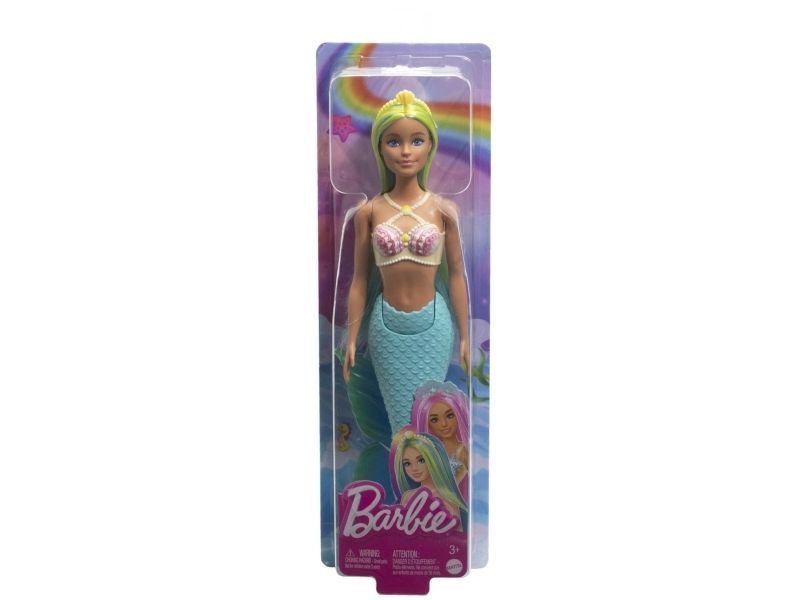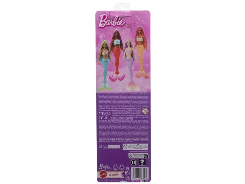 Barnen kommer älska att få hitta på magiska havssagor till sina vackra Barbie-sjöjungfrudockor! Varje sjöjungfru har en snäckinspirerad överdel, skulpterad stjärt och fantasifärgat hår prytt med detaljerade accessoarer. Barn från 3 år kan samla olika sjöjungfrur och åka på vattenäventyr! Produkterna säljs separat så långt lagret räcker. Barbie-dockorna kan inte simma eller stå utan hjälp. Färger och dekorationer kan variera.